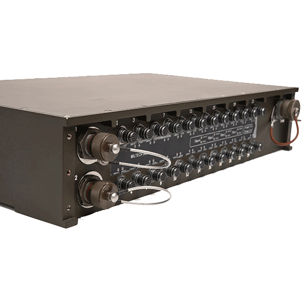 The MILTECH 9028 is a rugged military rack-mount 10GbE router with 24 triple-speed (10/100/1000Mbps) ports and 4x10Gbps fiber optic ports for applications that must support high-speed data traffic.